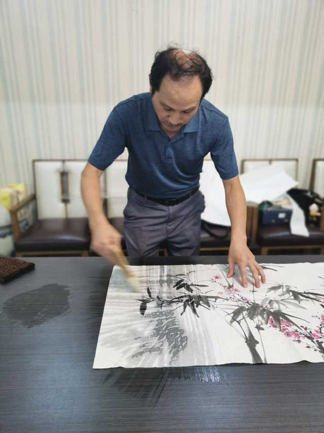 唐正安大师十七岁做学徒,向武汉市“中国书画院”的老先生系统、正规地学习中国传统装裱工艺,至今有近五十年的积累。此次讲座,唐大师把自己多年的经验,尤其是通过装裱师的角度去讲解和分析何为“三分画,七分裱”,如何让书画专业或书画爱好者通过装裱的基础知识,对个人书画创作有所裨益。