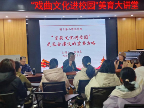 本网讯(李嘉仪来稿)12月1日下午,2023美育大讲堂系列讲座第十八讲——《京剧文化进校园是社会建设的重要方略》在9210成功举办。本次讲座亦为“京剧文化进校园”重要活动,由山东鲁东京剧文化促进会刘向东会长主讲。