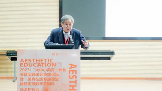 [通讯员王力]2023年11月25日,2023·“大中小美育一体化”美育实践研究高峰论坛暨“美育在线专递课堂”智能美育教学共同体学术研讨会在湖北第二师范学院图书馆二号报告厅、一号报告厅举行。陈池瑜教授做主题发言:中国现代美育理论与艺术教育。