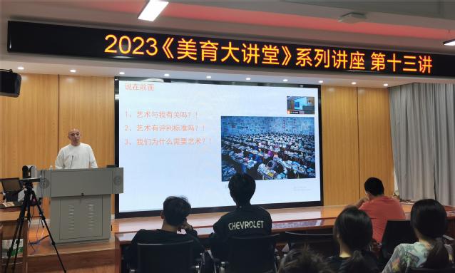 本次讲座由教育部“美育在线专递课堂”智慧美育教学共同体、大中小美育一体化实践与研究中心、湖北第二师范学院师范生美育实践中心、大学美育教研室共同主办,艺术学院创新实践中心承办。聆听本次讲座的有艺术学院师生及来自马克思主义学院、化学与生命科学学院、物理与机电工程学院、教育科学学院等学院《大学美育》课程的学生。